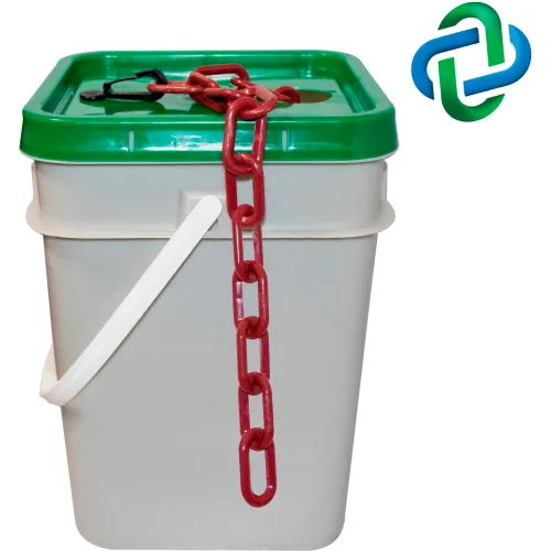 - Versatile plastic chain in a pail is a convenient solution to create a strong visual barrier to protect people and property