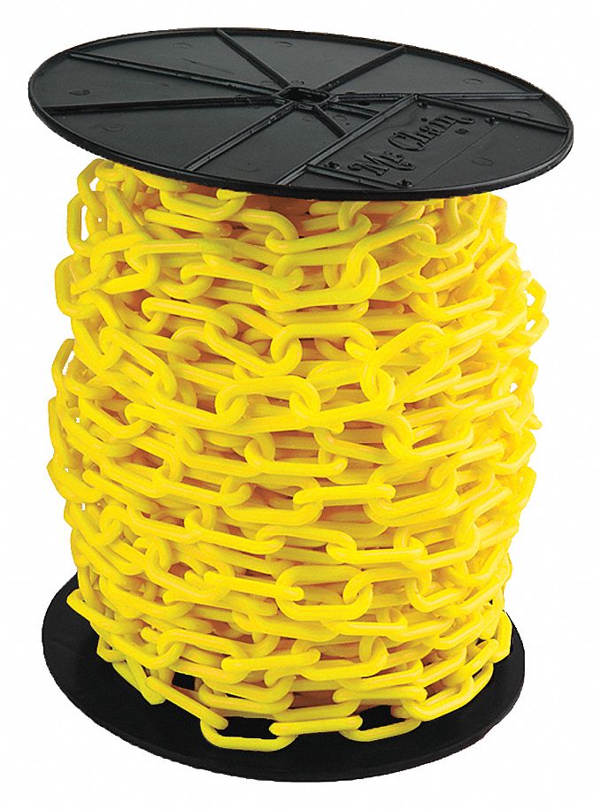 - Price For: Each Finish: Gloss Item: Plastic Chain Material: Polyethylene Size: 1-1/2" Length: 200 ft. Color: Yellow Application: Outdoor or Indoor Country of Origin (subject to change): United States