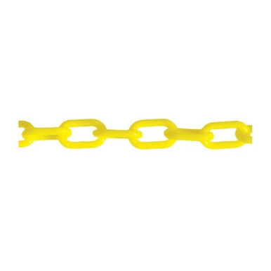 - <b>Price For:</b> Each <b>Item</b>: Plastic Chain <b>Finish</b>: Gloss <b>Material</b>: Polyethylene <b>Application</b>: Outdoor or Indoor <b>Size</b>: 2" <b>Length</b>: 500 ft. <b>Color</b>: yellow <b>Country of Origin (subject to change)</b>: United States