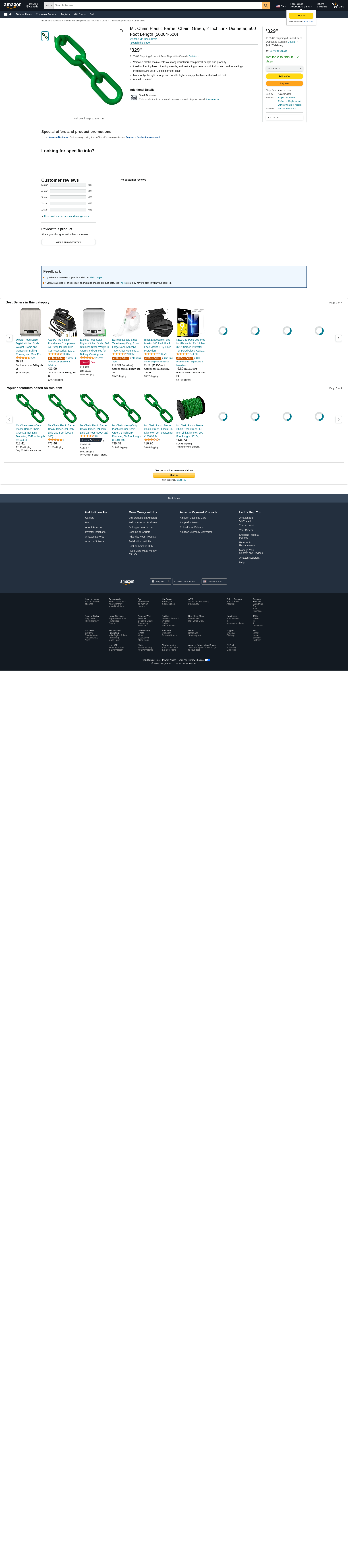 Mr. Chain Plastic Barrier Chain, Green, 2-Inch Link Diameter, 500-Foot Length (50004-500)