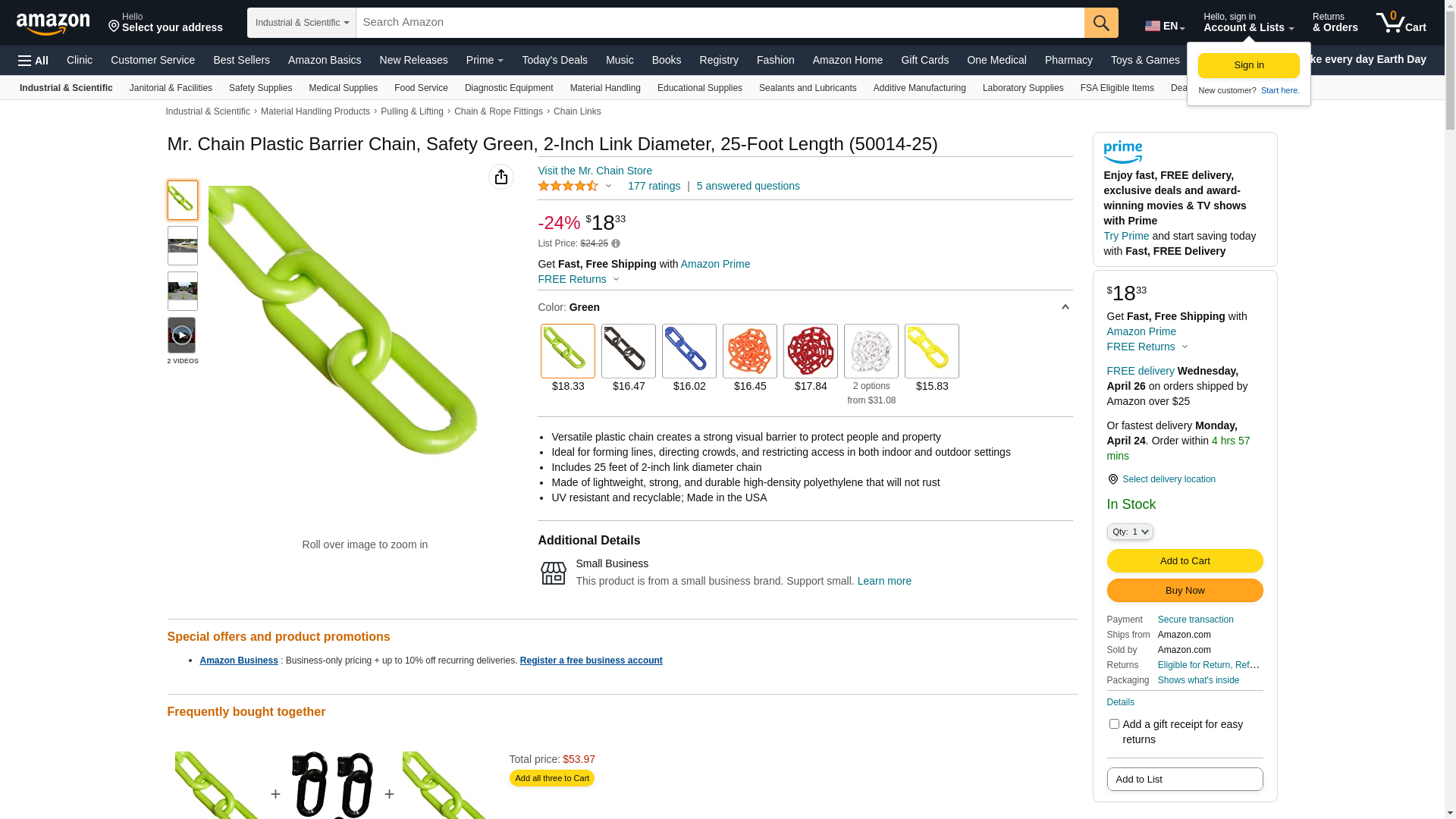 Mr. Chain Plastic Barrier Chain, Safety Green, 2-Inch Link Diameter, 25-Foot Length (50014-25)