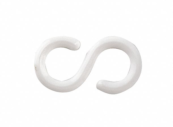 'S-Hook, Application Outdoor or Indoor, 2 In., White, UV Inhibited Polyethylene, Gloss Finish, For Use With Plastic Chain, Package Quantity 10'