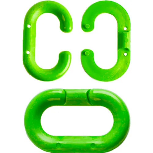 Chain-connecting master links ideal for repairing or joining chains. Designed for use with Mr. Chain 2-inch plastic chains (sold separately). Rust and UV-resistant prevents brittleness;. Made of lightweight, strong, and durable high-density polyethylene. Package includes: 10 Safety Green 2-piece chain links; links are 2-inches in diameter. Made in the USA., Lot of 1