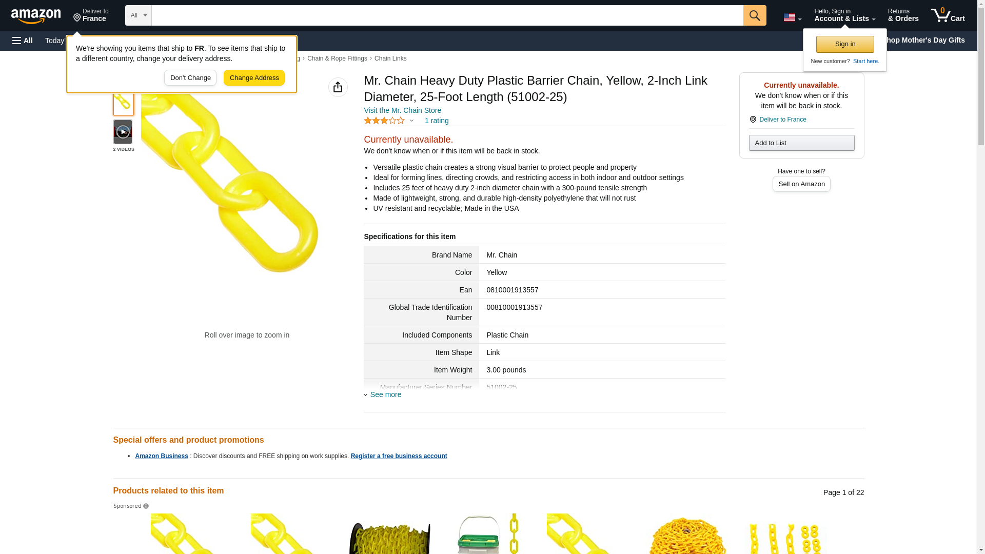 Mr. Chain Heavy Duty Plastic Barrier Chain, Yellow, 2-Inch Link Diameter, 25-Foot Length (51002-25)