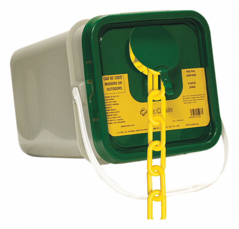 Mr. Chain Heavy-Duty Plastic Barrier Chain Pail, Yellow, 2-Inch Link Diameter, 120-Foot Length (51002-P)