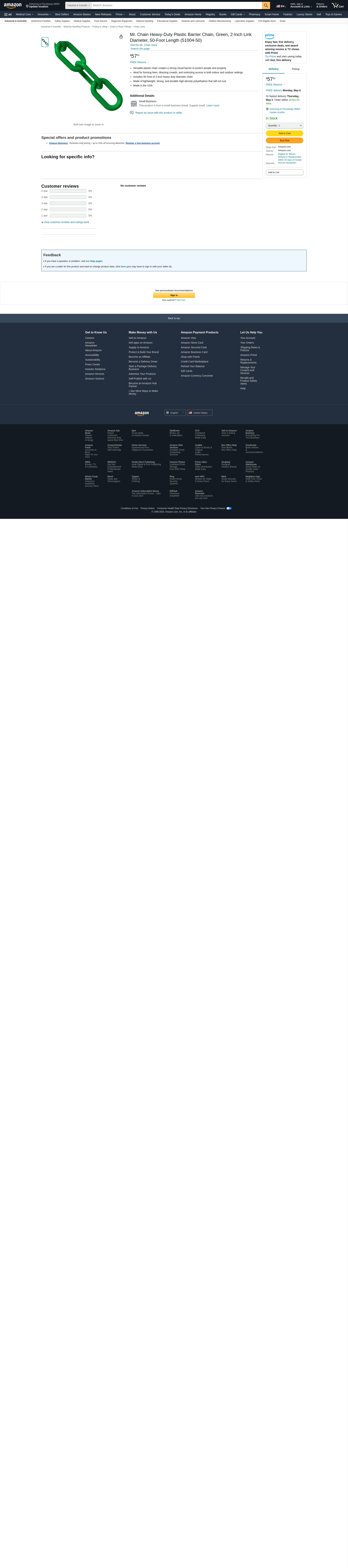 Mr. Chain Heavy-Duty Plastic Barrier Chain, Green, 2-Inch Link Diameter, 50-Foot Length (51004-50)