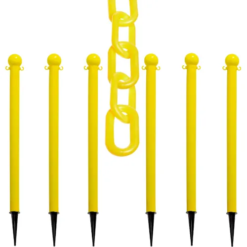 Mr. Chain? 2" Ground Pole Kit w/ 2" x 50'L Chain, Yellow, Pack of 6