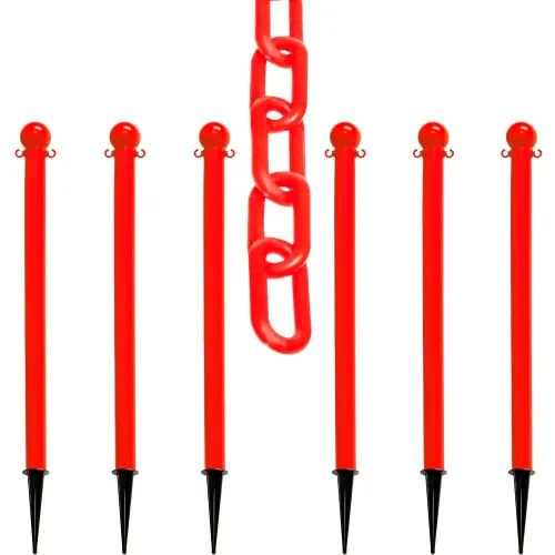 Mr. Chain? 2" Ground Pole Kit w/ 2" x 50'L Chain, Red, Pack of 6