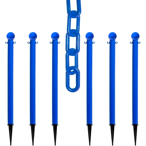 Mr. Chain? 2" Ground Pole Kit w/ 2" x 50'L Chain, Blue, Pack of 6