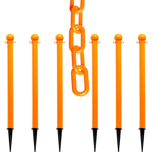 Mr. Chain? 2" Ground Pole Kit w/ 2" x 50'L Chain, Safety Orange, Pack of 6