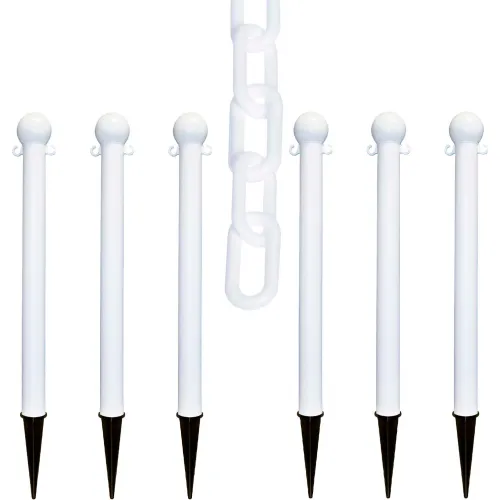 Mr. Chain? 3" Heavy Duty Ground Pole Kit w/ 2" x 50'L Chain, White, Pack of 6