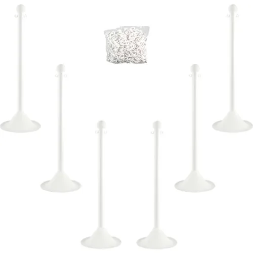 Mr. Chain 71001-6 White Plastic Stanchion Kit with 50' of 2" link Chain and C-Hooks, Pack of 6. Includes: 32" pole (2...