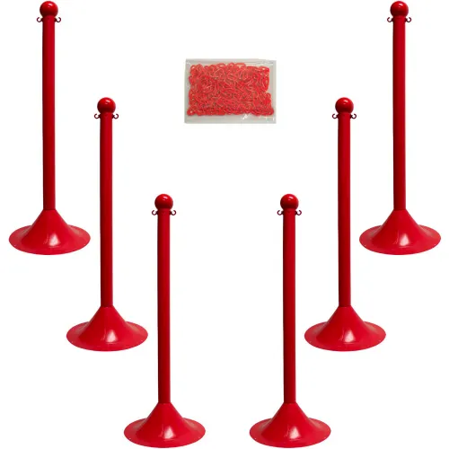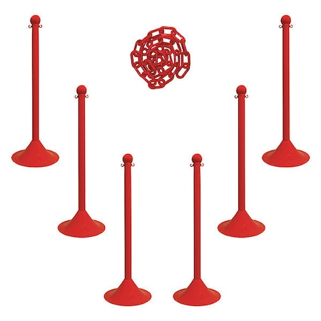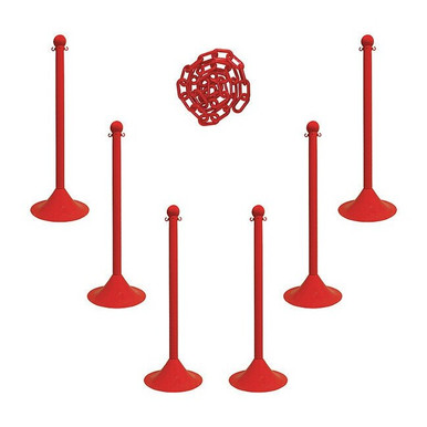 Mr. Chain 71005-6 Red Plastic Stanchion Kit with 50' of 2" link Chain and C-Hooks, Pack of 6. Includes: 32" pole (2" ...