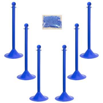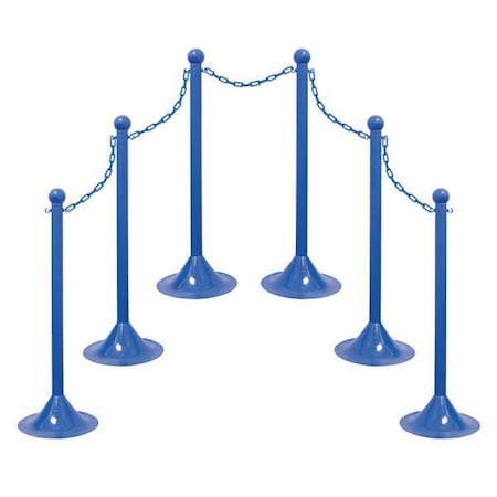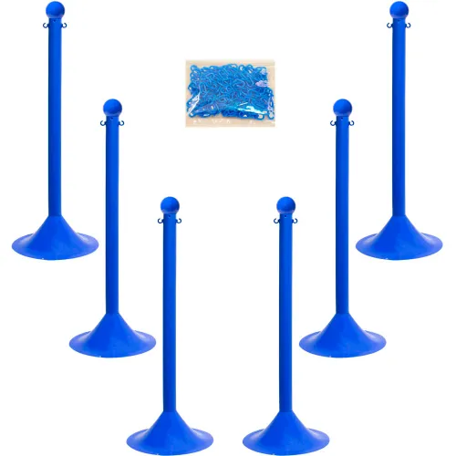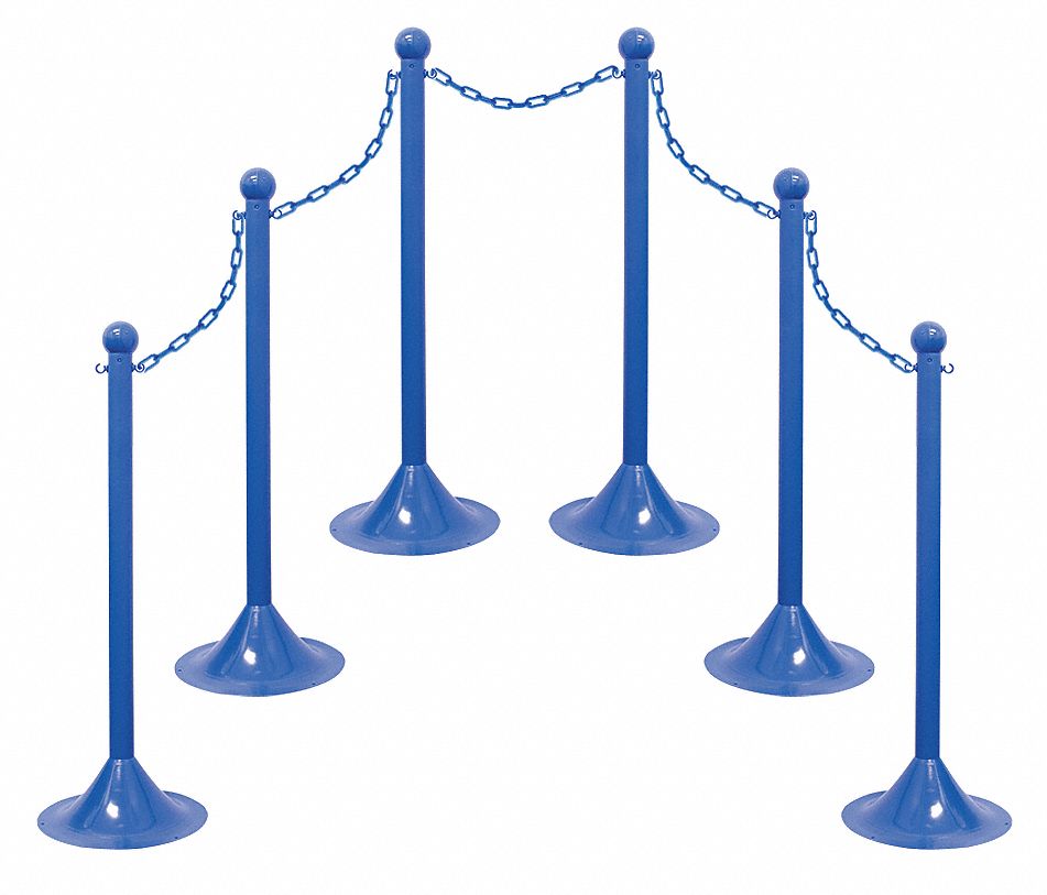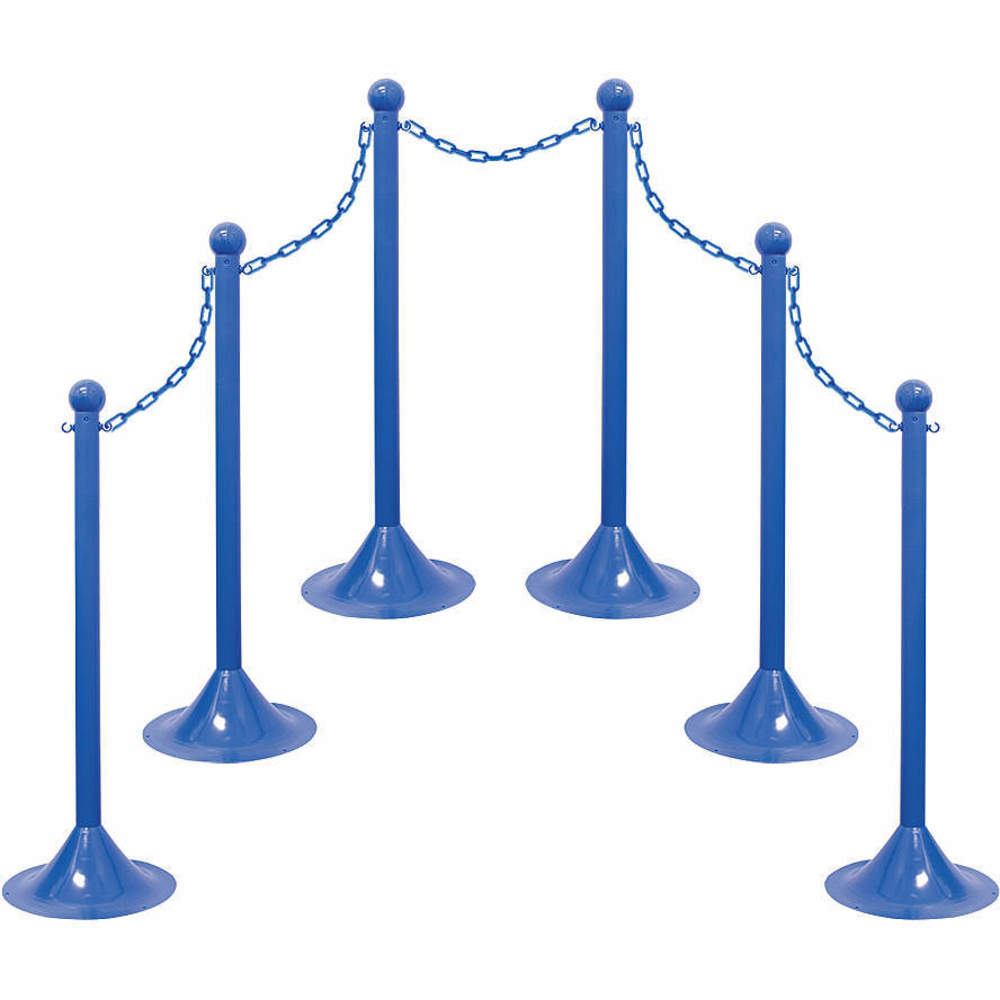 Mr. Chain Plastic Stanchion Kit with 50 Feet of 2-Inch Link Chain and C-Hooks, Blue, Pack of 6 (71006-6)