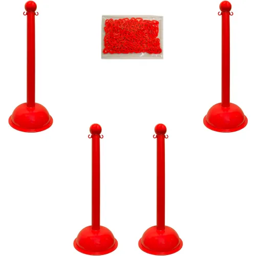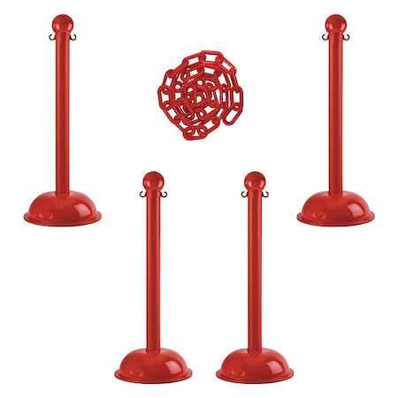 Mr. Chain 71305-4 Red Plastic Stanchion Kit with 30" of 2" HD chain and C-Hooks, Pack of 4. Includes: 32" pole (3" di...