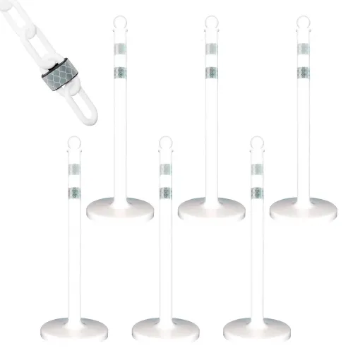 Mr. Chain? 2-1/2" Medium Duty Reflective Stanchion Kit w/ 2" x 50'L Chain, White, Pack of 6