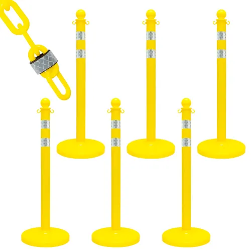 Mr. Chain? 2-1/2" Medium Duty Reflective Stanchion Kit w/ 2" x 50'L Chain, Yellow, Pack of 6