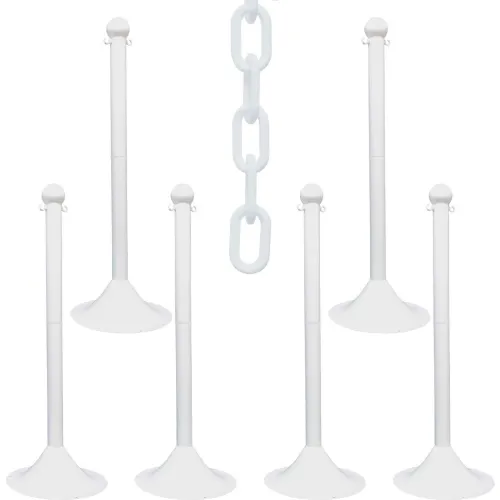 Mr. Chain? 2" Light Duty Stowable Stanchion Kit w/ 2" x 50'L Chain, White, Pack of 6