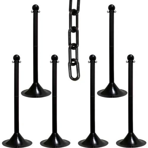 Mr. Chain? 2" Light Duty Stowable Stanchion Kit w/ 2" x 50'L Chain, Black, Pack of 6