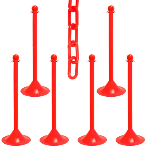 Mr. Chain? 2" Light Duty Stowable Stanchion Kit w/ 2" x 50'L Chain, Red, Pack of 6