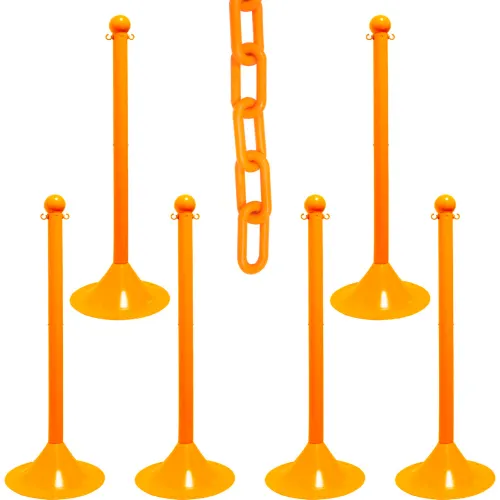 Mr. Chain? 2" Light Duty Stowable Stanchion Kit w/ 2" x 50'L Chain, Safety Orange, Pack of 6