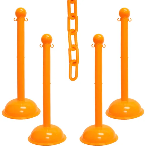 Mr. Chain? 3" Heavy Duty Stowable Stanchion Kit w/ 2" x 30'L Chain, Safety Orange, Pack of 4