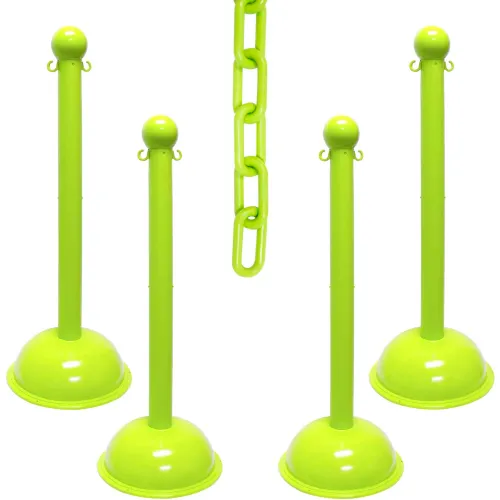 Mr. Chain? 3" Heavy Duty Stowable Stanchion Kit w/ 2" x 30'L Chain, Safety Green, Pack of 4