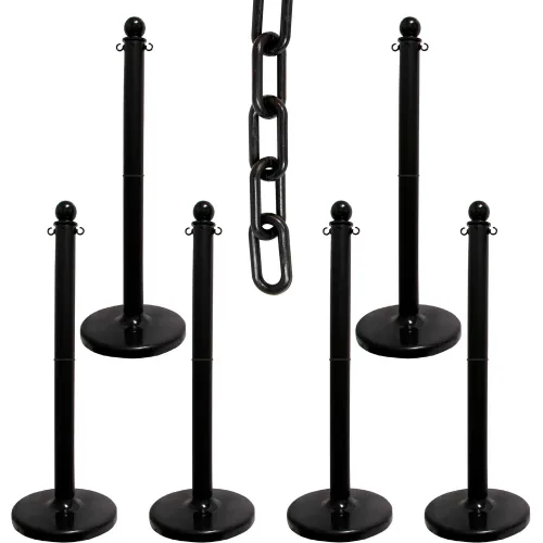 Mr. Chain? 2-1/2" Medium Duty Stowable Stanchion Kit w/ 2" x 50'L Chain, Black, Pack of 6