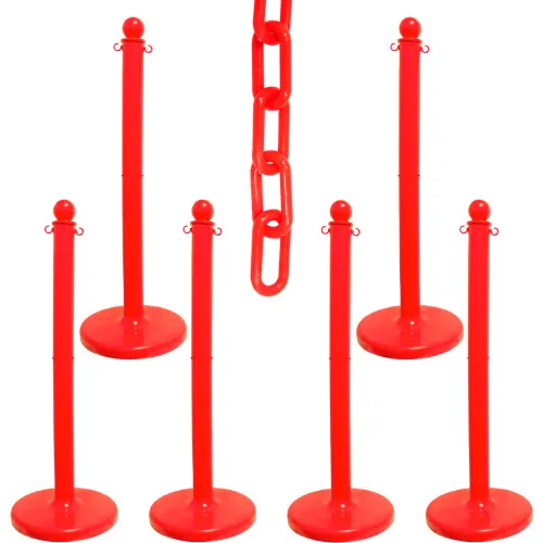 Mr. Chain? 2-1/2" Medium Duty Stowable Stanchion Kit w/ 2" x 50'L Chain, Red, Pack of 6