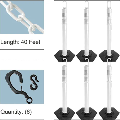 Mr. Chain Delineator & Chain Kit, 2" x 40'L Chain, Hexagonal Base, White, Pack of 6