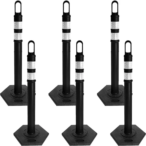 Mr. Chain Delineator with Reflective Stripe, Hexagonal Base, Black, Pack of 6