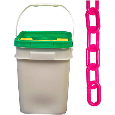 Mr. Chain Plastic Barrier Chain in a Pail, HDPE, 3"x70', #10, 76mm, Safety Pink