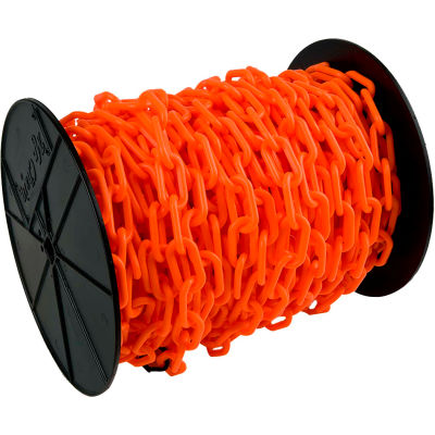 Mr. Chain Plastic Barrier Chain on a Reel, HDPE, 3"x60', #10, 76mm, Traffic Orange
