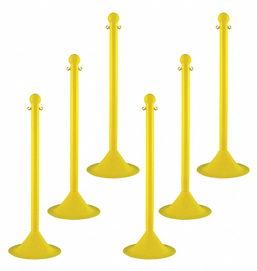 ' Light Duty Stanchion, Application Outdoor or Indoor, Post Dia. 2 In., Height 41 In., Color Yellow, Post Material UV Inhibited Polyethylene, Base Dia. 14 In., Base Material High Density Polyethylene, Post Finish Matte, Finish Plastic, Base Type Dome, For Use With 1.5 In. and 2 In. Plastic Chain, Includes Ball Top and C-Hook, Package Quantity 6 '