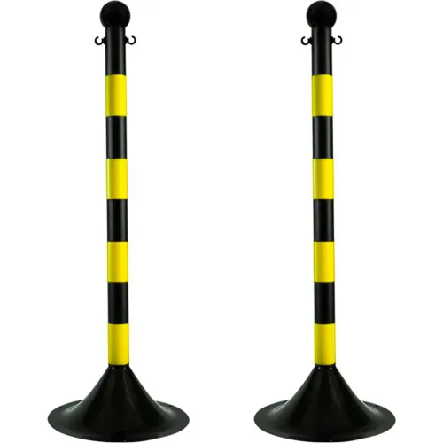 Mr. Chain 2" Light Duty Stanchion, 41''H, Black Pole with Yellow Stripe