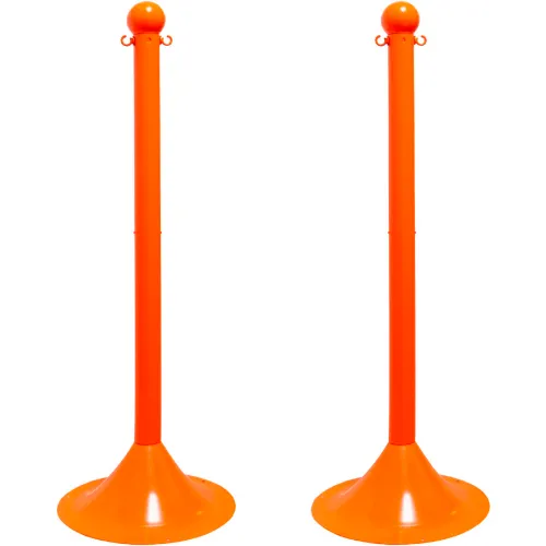 Mr. Chain? 2" Light Duty Stowable Stanchion, 41"H, Safety Orange, Pack of 2