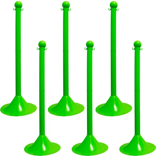 Mr. Chain? 2" Light Duty Stowable Stanchion, 41"H, Safety Green, Pack of 6
