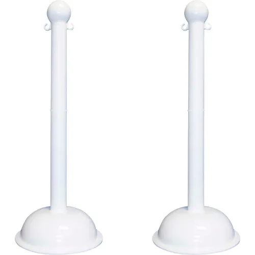 Mr. Chain? 3" Heavy Duty Stowable Stanchion, 41"H, White, Pack of 2