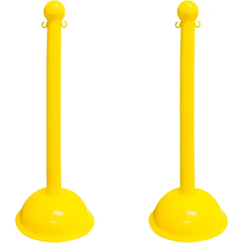 Mr. Chain? 3" Heavy Duty Stowable Stanchion, 41"H, Yellow, Pack of 2