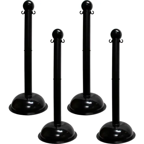 Mr. Chain? 3" Heavy Duty Stowable Stanchion, 41"H, Black, Pack of 4