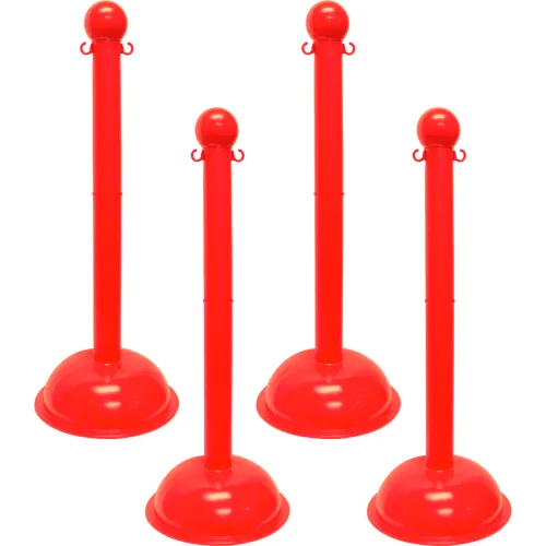 Mr. Chain? 3" Heavy Duty Stowable Stanchion, 41"H, Red, Pack of 4
