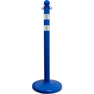 Mr. Chain 33 1/2" Pole, 40"H, With Ball Top & C-Hook, 14" Base, HDPE, Blue w/ DOT Strip