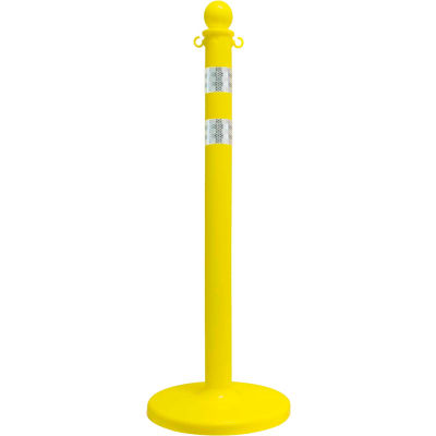Mr. Chain 33 1/2" Pole, 40"H, With Ball Top & C-Hook, 14" Base, HDPE, Yellow w/ DOT Strip