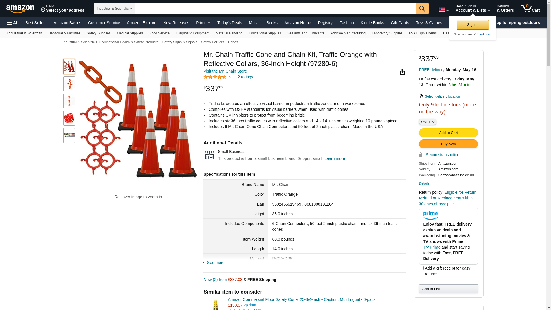 - Complete Solution - Includes 6 traffic cones, 6 cone chain connectors, and 50 feet of plastic chain.