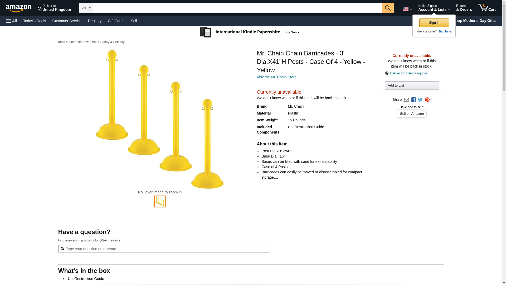 Lightweight plastic construction is weather-resistant with UV inhibitors and won't rust, corrode or fade. MR. CHAIN Chain Barricades are cost-effective and highly visible. Perfect for crowd control or for creating visual barriers. Barricades can easily be moved or disassembled for compact storage in minutes. Posts can be filled with sand to increase stability. Posts and chain are sold separately and assemble easily.