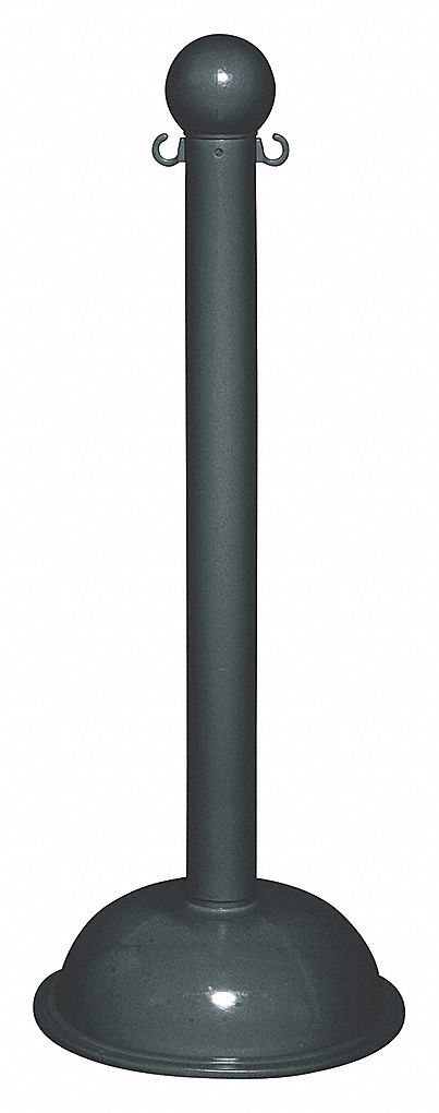 Heavy Duty Stanchion, Application Outdoor or Indoor, Post Dia. 3 in, Height 41 in, Color Black, Post Material UV Inhibited Polyethylene, Base Dia. 16 in, Base Material High Density Polyethylene, Post Finish Matte, Finish Gloss, Base Type Dome, For Use With 1.5 in and 2 in Plastic Chain, Includes Ball Top and C-Hook, Fillable Yes, Package Quantity 4