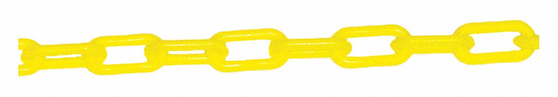 - <b>Price For:</b> Each <b>Finish</b>: Gloss <b>Item</b>: Plastic Chain <b>Application</b>: Outdoor or Indoor <b>Material</b>: Polyethylene <b>Size</b>: 1-1/2" <b>Length</b>: 500 ft. <b>Color</b>: yellow <b>Country of Origin (subject to change)</b>: United States