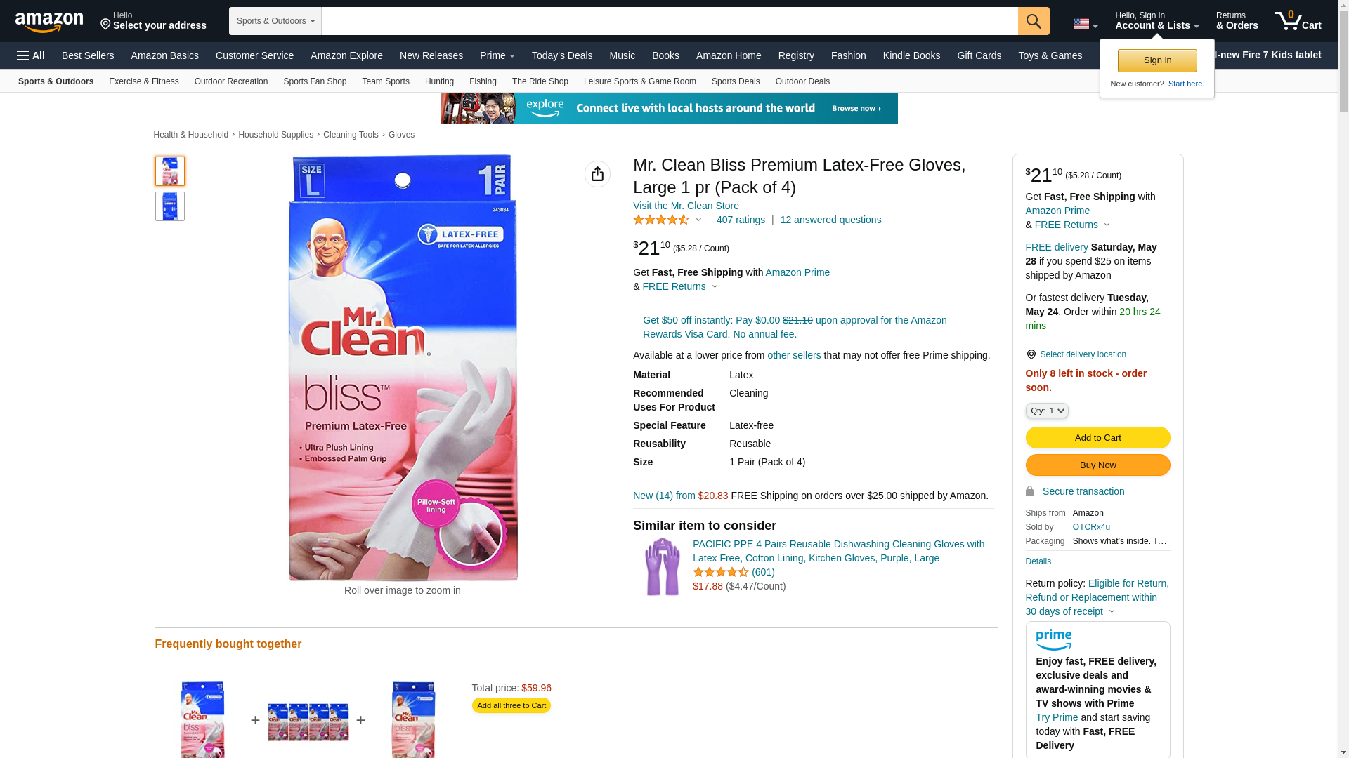 Mr. Clean Bliss Premium Latex-Free Gloves, Large 1 pr (Pack of 4)