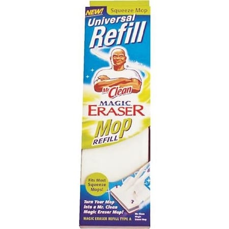 Maintain clean floors with this Mr. Clean Magic Eraser refill solution. Keep floors tidy and shiny by using this Magic Eraser mop. The deep penetrating action ensures complete removal of dirt and grime in hard-to-reach places, and the highly absorbent material helps rinse and dry floors fast. Made with extra-durable materials to eliminate stubborn stains, this Mr. Clean Magic Eraser mop is ideal for intense cleaning and works well on marble, stone, tile, and vinyl floors. This refill solution makes your floors really shine with the deep penetrating action getting out dirt and grime trapped in grooves and surfaces. Blue and white squeeze mop. Fits most squeeze mops - turn any mop into a Magic Eraser. Dimensions: 9.9W. For indoor use. Safe for use on vinyl, tile, marble, stone, non-wax floors. For best results, use with your favorite all-purpose cleaner. Refill for item 757848.