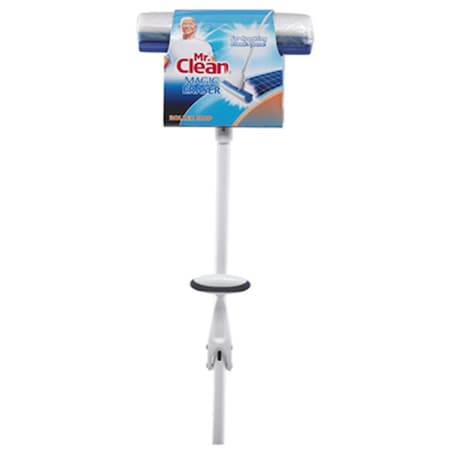 New and improved the Mr. Clean magic eraser roller mop with scrub brush now helps makes cleaning your floors easier than ever. The updated design not only allows you to get the sparkling floors this mop has brought you before but it now comes equipped with a scrub brush attachment to help you get down and dirty with the toughest of spots. And because this is a Mr. Clean magic eraser you dont need to use harsh chemicals to get your floors perfectly clean. Just add water and/or your favorite all-purpose cleaning solution and your floors will be shinning like new. So dont just mop with any old sponge, use the Mr. Clean magic eraser roller mop with scrub brush and know you're getting your floors clean and the job done right.; ; Brand Name: Mr. Clean Sub Brand: Magic Eraser Mop Material: Foam Head Width: 10 in. Mop Head Type: Roller Product Type: Mop with Scrub Brush Commercial or Residential: Residential Handle Material: Metal Color: Blue/White Handle Length: 45 in. Number in Package: 1 pk Head Depth: 3 in.